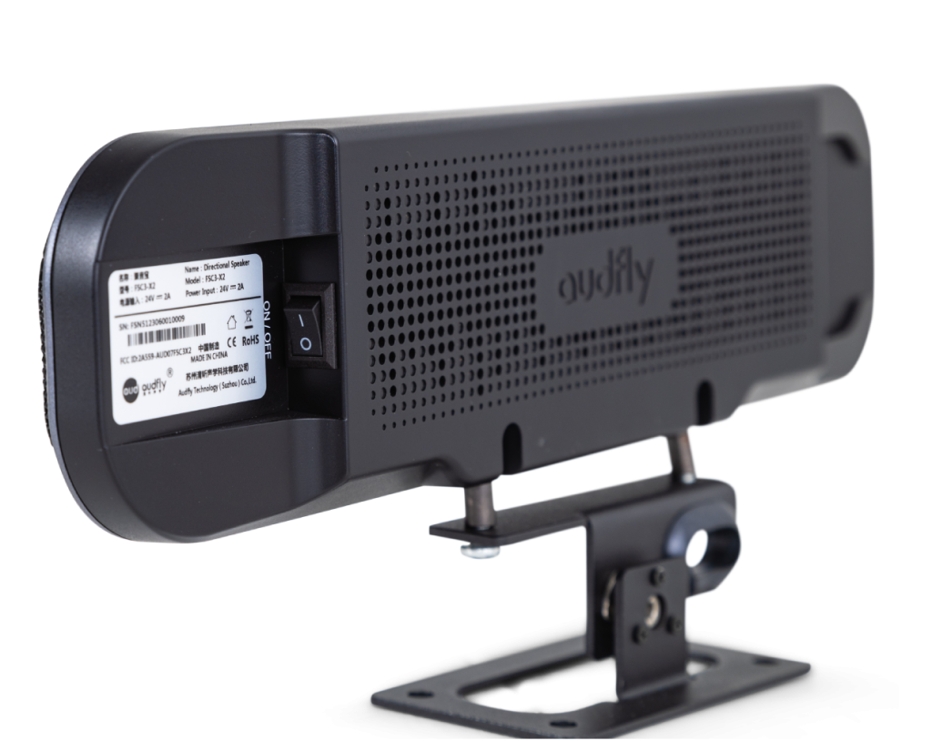Largest available ultrasonic directional speaker, creating a 2ft square sound field with minimal bleed